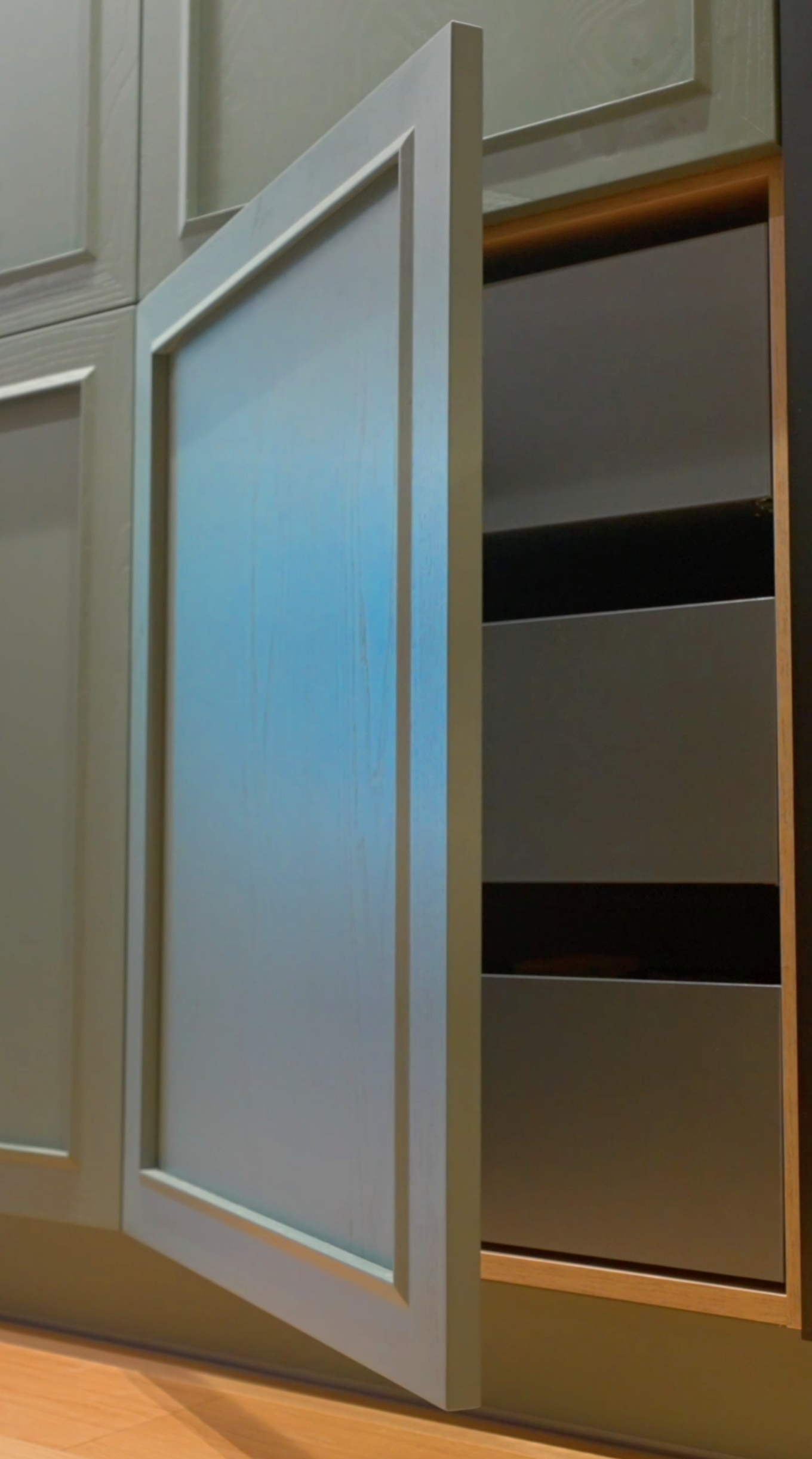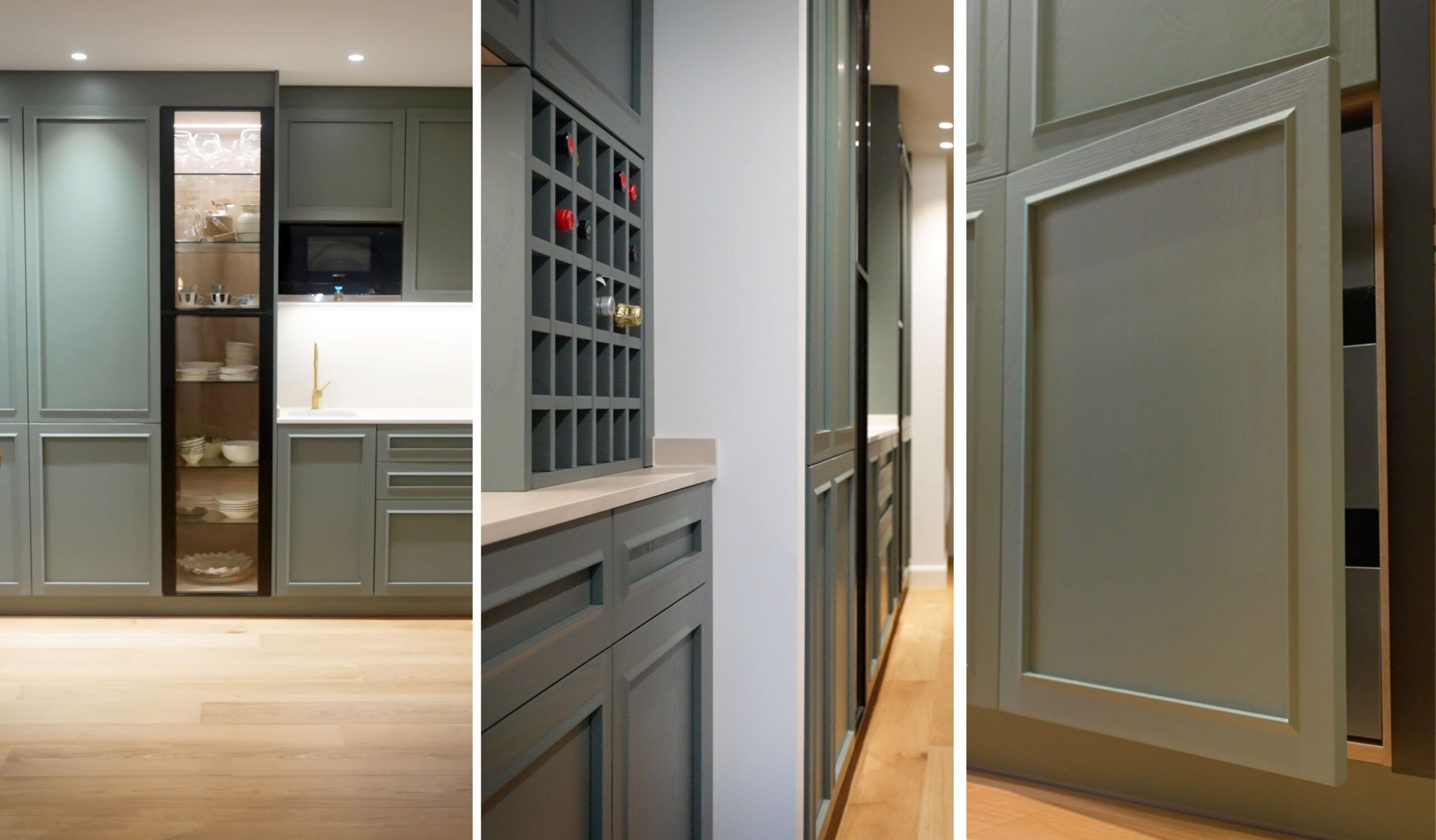 Développé pour Ale Corsini, le projet reflète une vision où nature et confort cohabitent en parfaite harmonie. Le choix du modèle ‘Chicago’ en vert ‘Fresno Olivato’ n’est pas un hasard ; cette teinte chaude et enveloppante est inspirée par la sérénité des forêts, apportant ainsi un morceau de nature au cœur de la maison. Les textures et finitions soigneusement sélectionnées ajoutent une touche organique, tandis que la disposition et la fonctionnalité de l’espace garantissent que chaque élément trouve sa place parfaite, tant pour le plaisir quotidien que pour la création de moments inoubliables.
